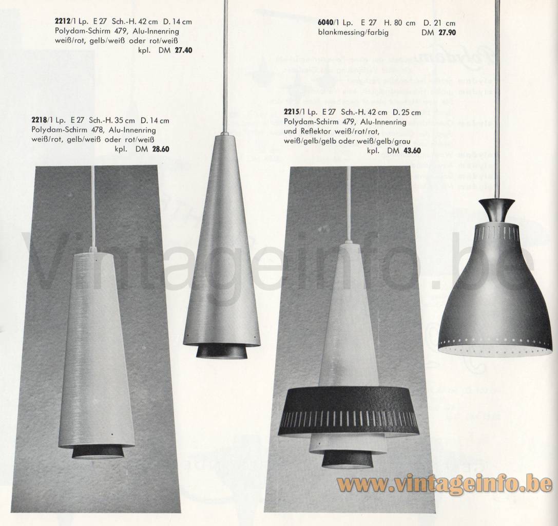 Dame & Co catalogue picture with a brass model 6040 with elongated slits. Oother models on this page are: 2215, 2212 and 2218, all conical pendant lamps.