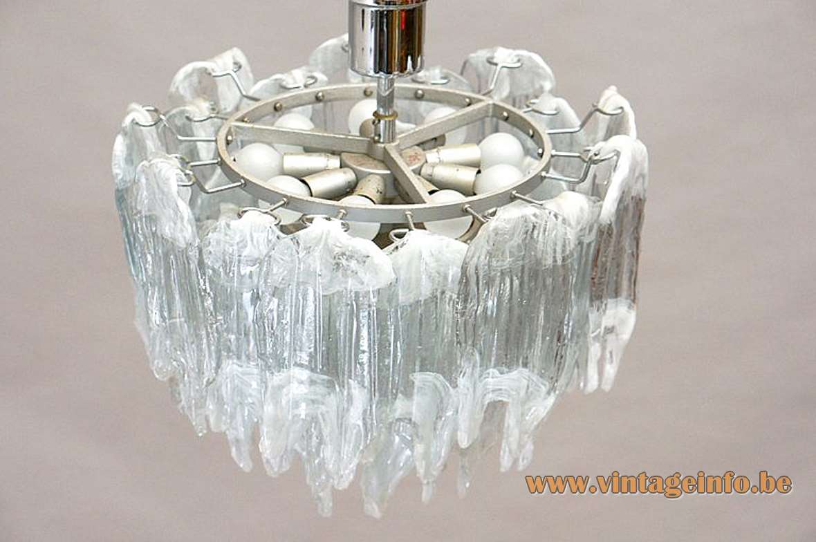 Other versions: This 1970s dripping icicles chandelier exists in several versions. Bigger and smaller lamps and different colours with some variations. All these lamps were hand blown and therefore all unique with a little difference.