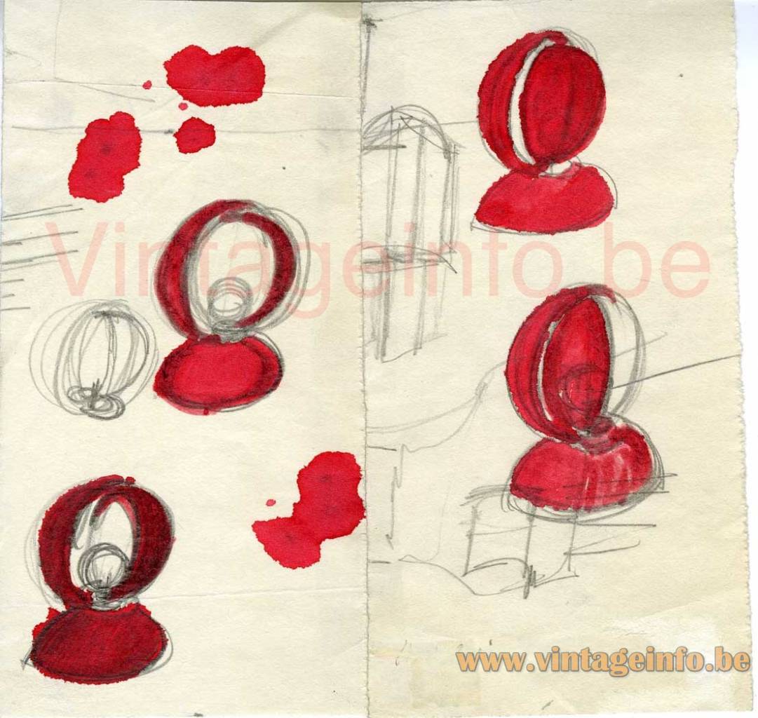 1960s drawing of the Eclisse table or wall lamp by Vico Magistretti. He drew countless of them before he came to the final design.