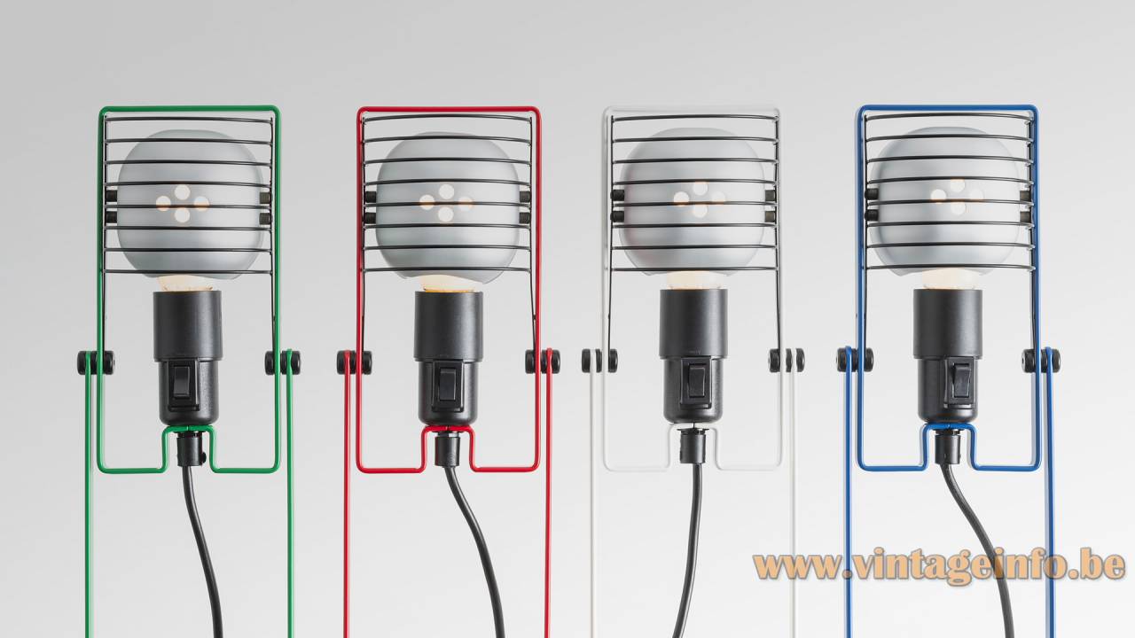 To celebrate the 50th anniversary of this lamp series in 2025, this model, the Sintesi, was reissued. There are a few differences: a different (plastic) socket with built-in switch and the designer’s name, Ernesto Gismondi, is printed on the lamp (photo below). It was released in the original colours; white, red blue and green. But otherwise, the differences are significant enough to distinguish between old and new.