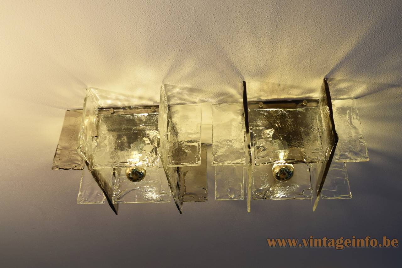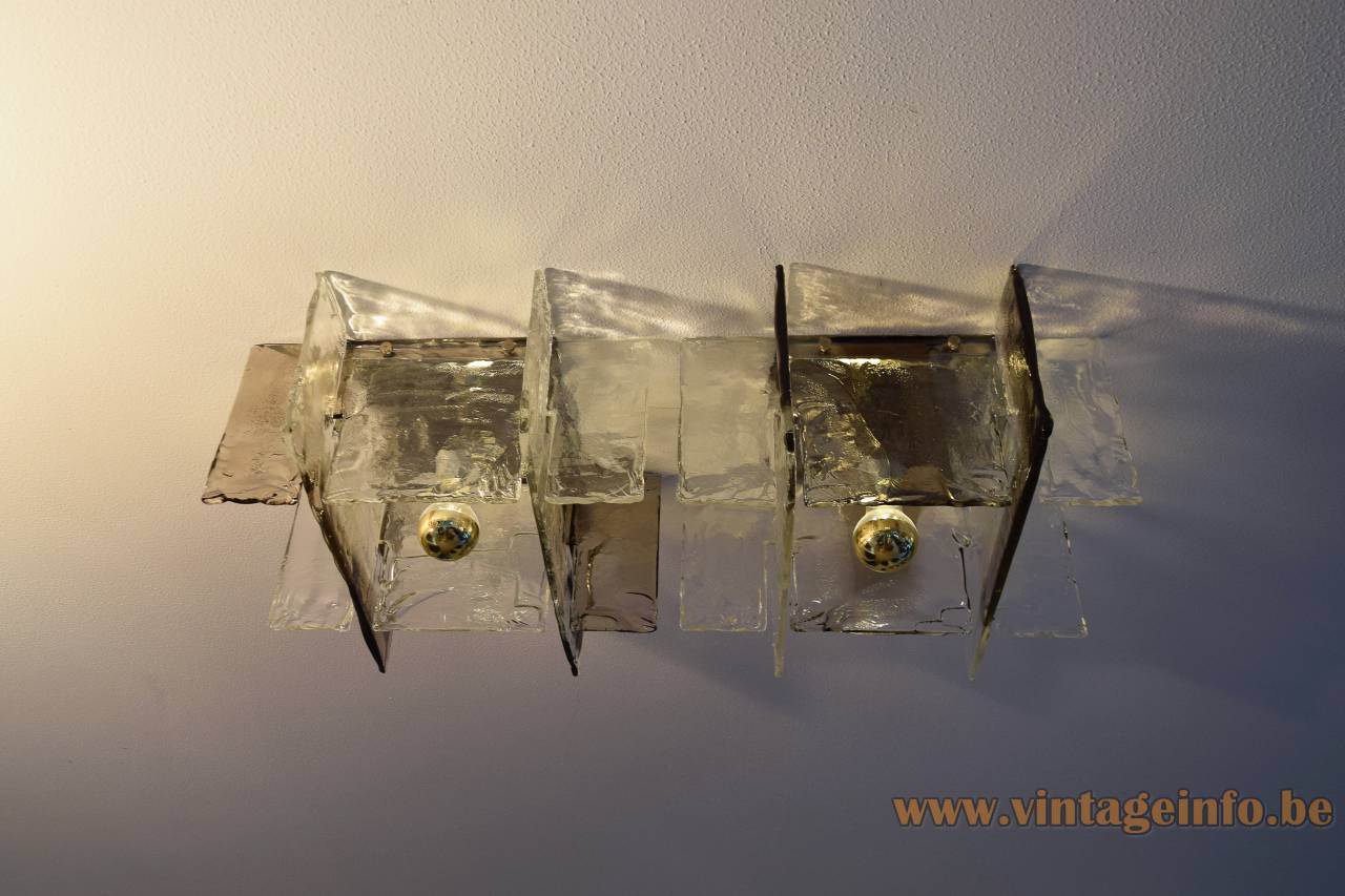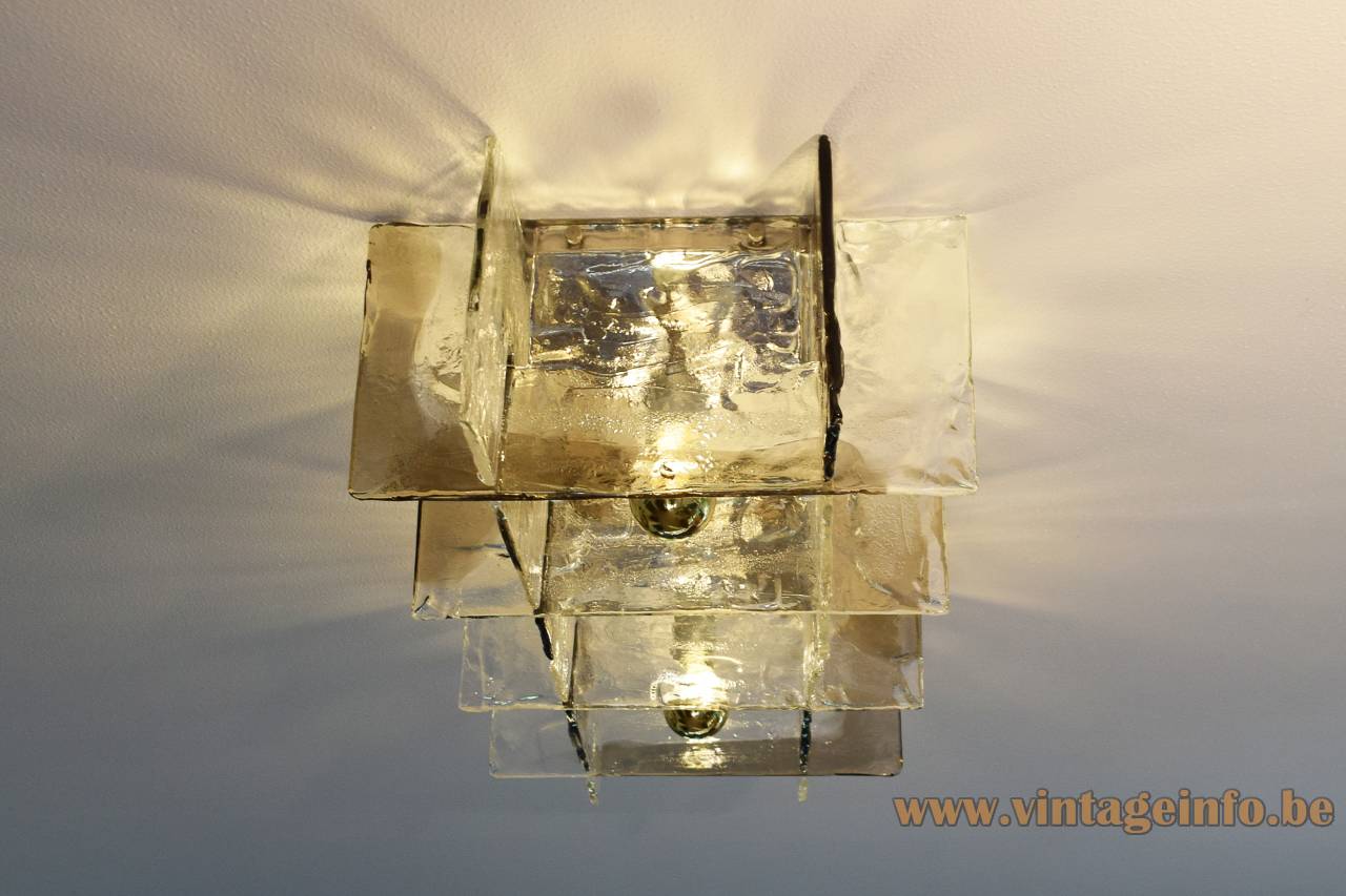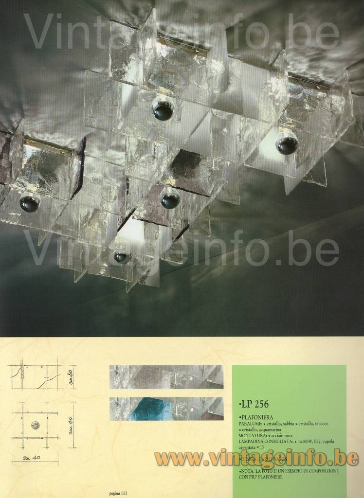 Other versions: This AV Mazzega Ghiaccio ceiling lamp is model LP 256. It comes in tobacco brown or purple. It is also a wall lamp. The name Ghiaccio (Ice) only appears in more recent catalogues; in the old catalogues it was just a number. Ghiaccio was chosen as the name for this article because it says more than just a number, as this is indeed an authentic lamp from the 1970s.