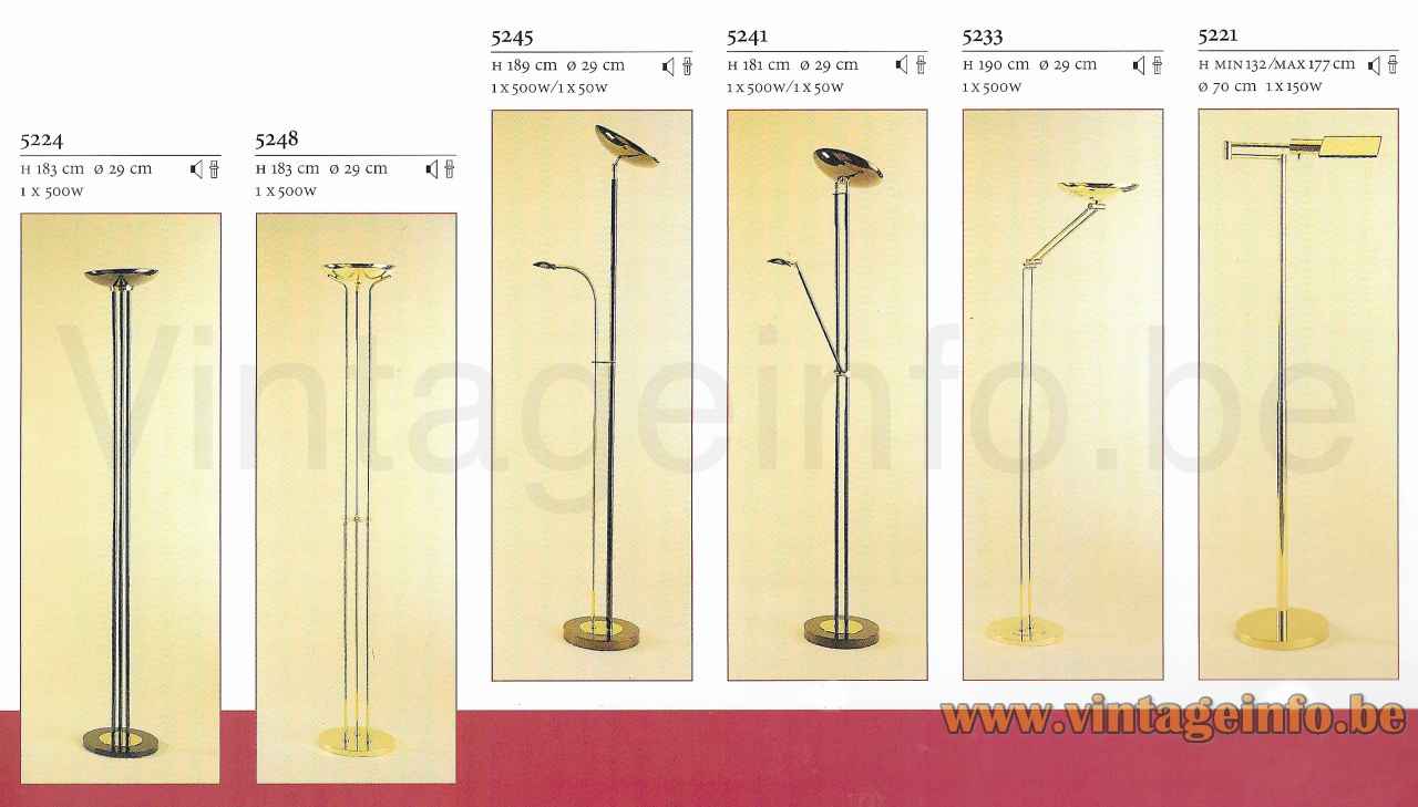 S.A. Boulanger was founded in Anderlecht, Belgium in 1945. The company is famous for the large amount of lights it produced that were designed by Gaetano Sciolari. At some point in the 1980s the company changed their name in Les Ateliers Boulanger NV.
