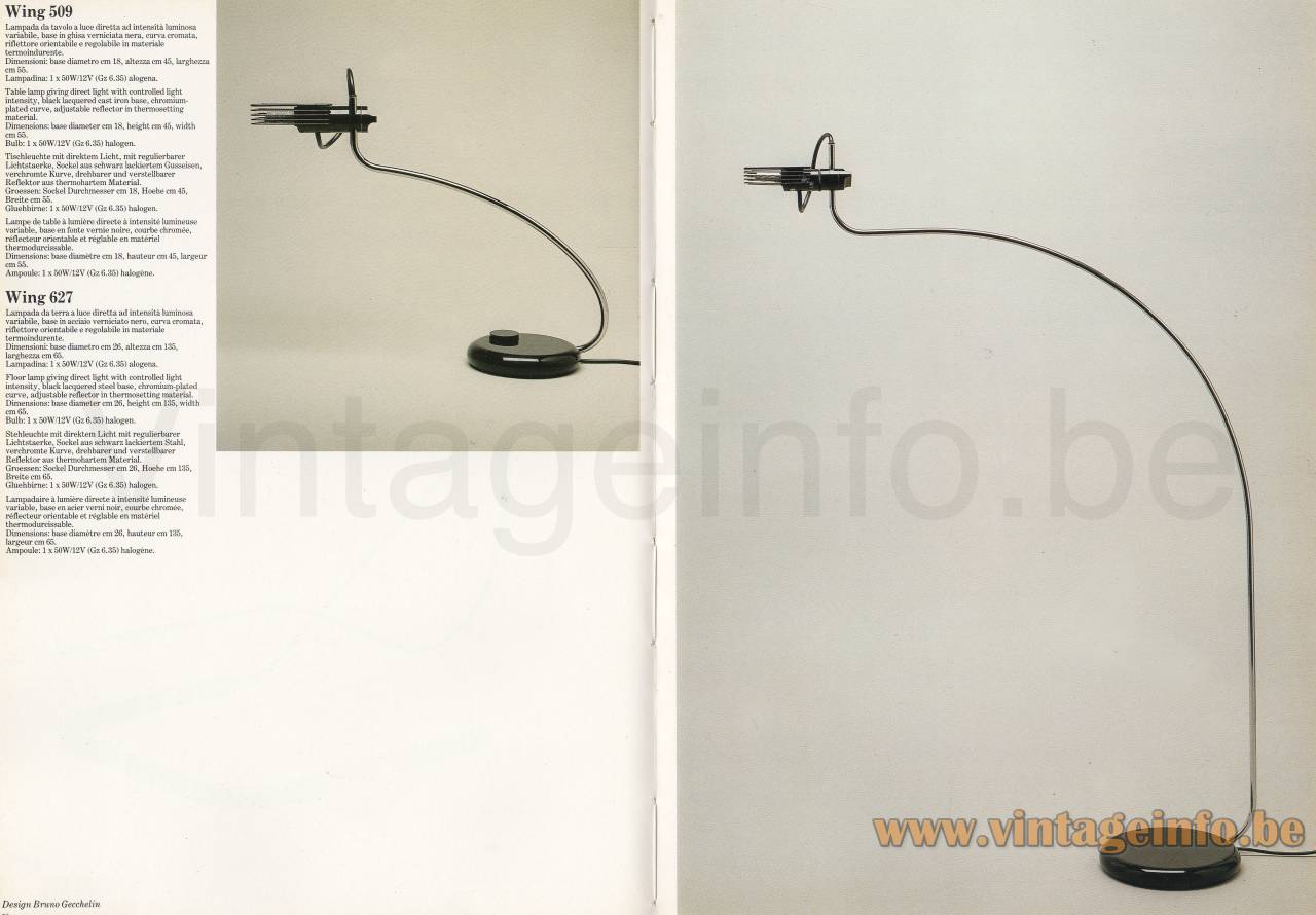 Bruno Gecchelin Wing Desk Lamp -1978 Catalogue Picture