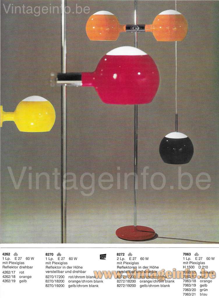 This lamp series is only listed in the 1970 catalogue. The other lamp, model 8271, without the acrylic reflector, was made a few years longer. You can find it here.
