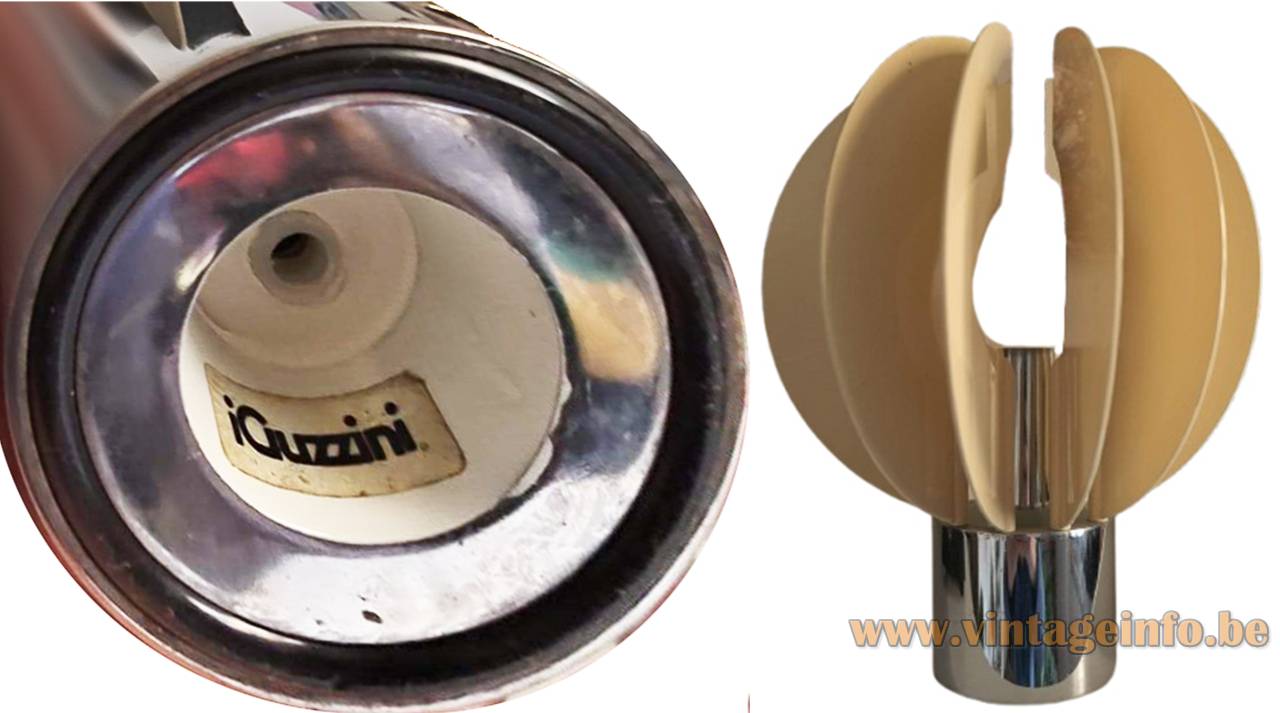 However, despite the numerous photographs published in magazines, it is often difficult to determine whether a lamp base is polished or brushed aluminium or chrome-plated; in some cases it may in fact be brushed or polished stainless steel. The only version that can be identified with certainty as having a chrome-plated base is the iGuzzini example shown below. Since the iGuzzini name was only adopted from 1974 onwards (the company previously operated as Harvey Guzzini), this version must have been produced later than the others. It remains unclear whether a Harvey Guzzini –branded version of the Spicchio lamp ever existed; none has so far been documented in catalogues.