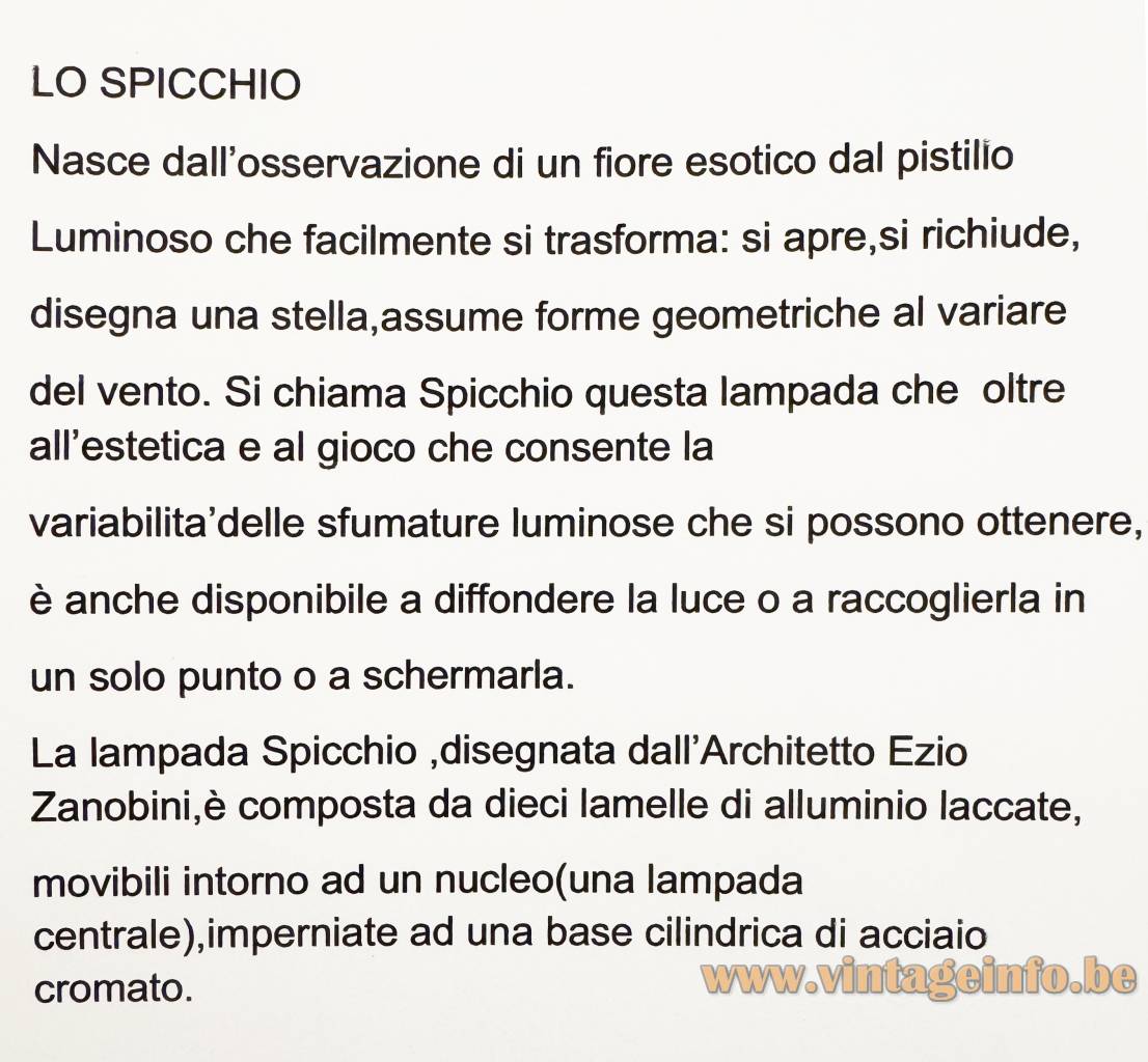 Ezio Zanobini Spicchio table lamp 1970 Formaluce Magazine 15 Lo Spicchio Italian text