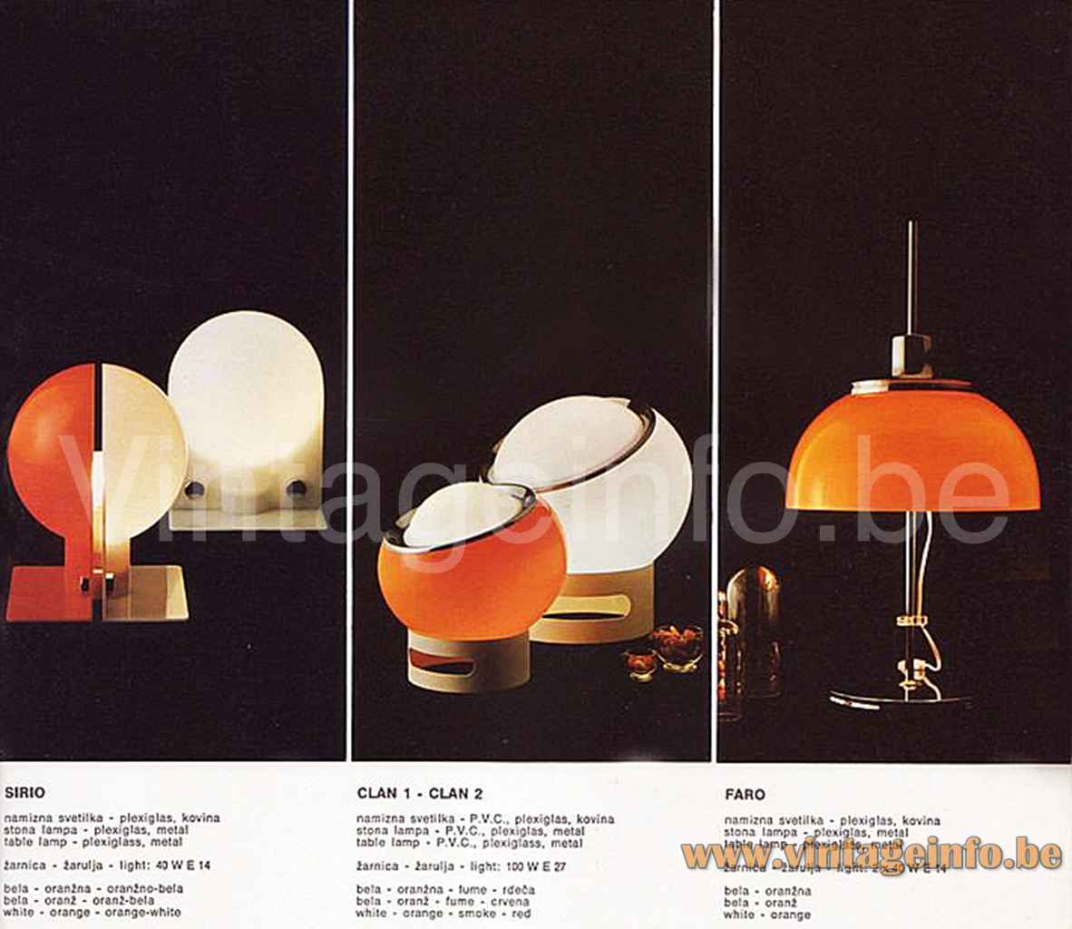 These lamps were also sold as MEBLO Clan (from 1977 to 1979) two years after the end of the production.