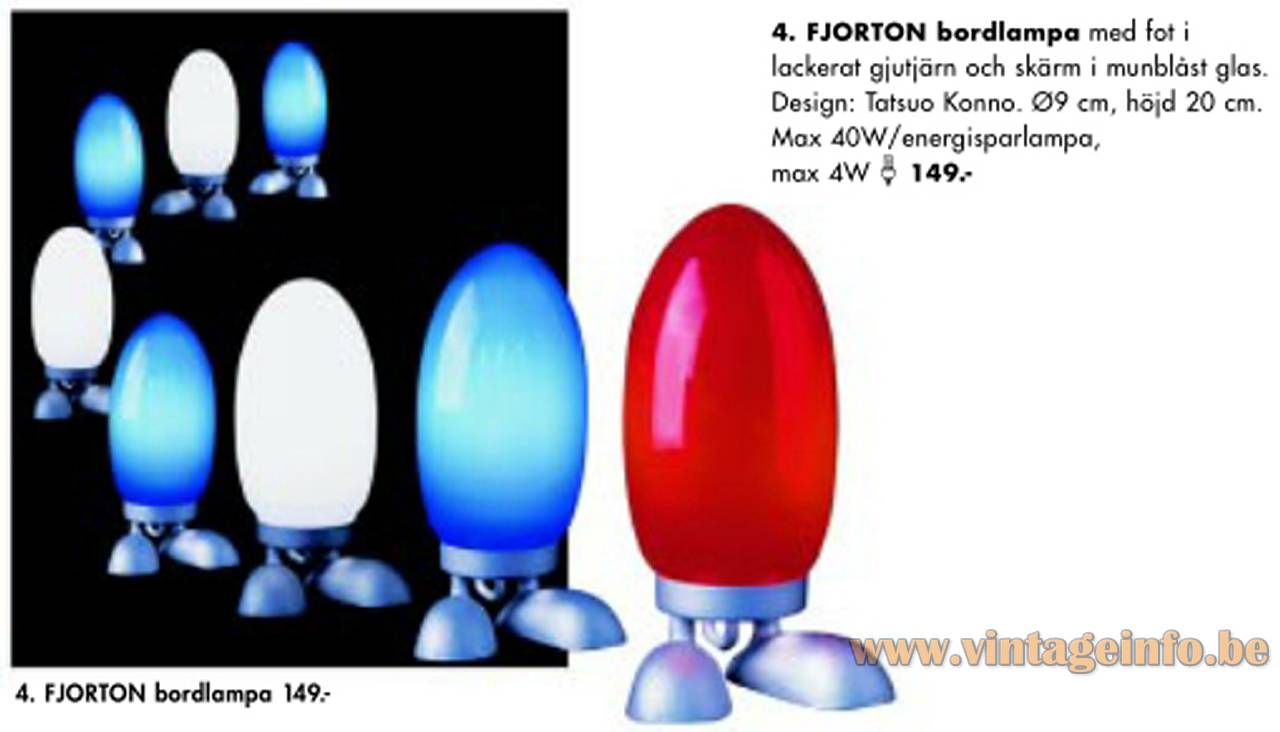 Other versions: The Fjorton table lamp exists in white, blue, & red. It appears in IKEA catalogues from 2000 until 2002.