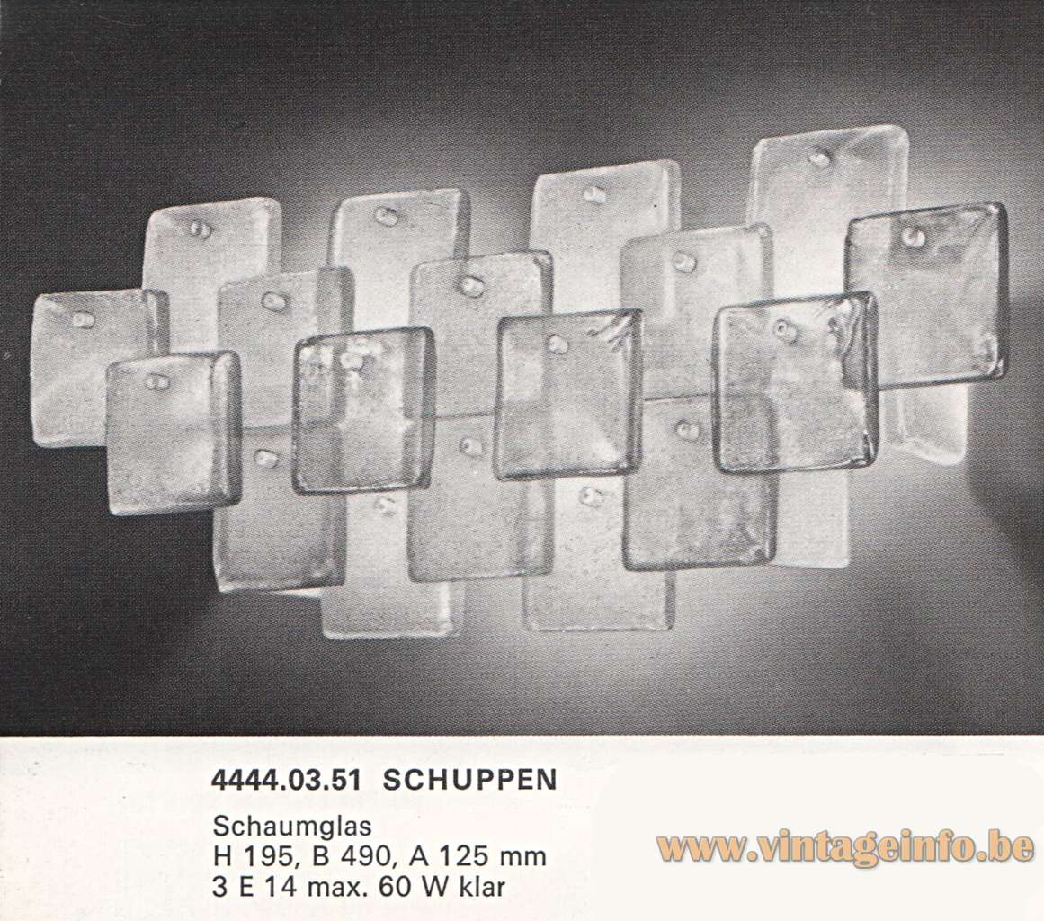 All the glass parts of the Kalmar Schuppen wall lamp were made by AV Mazzega, Murano, Italy.