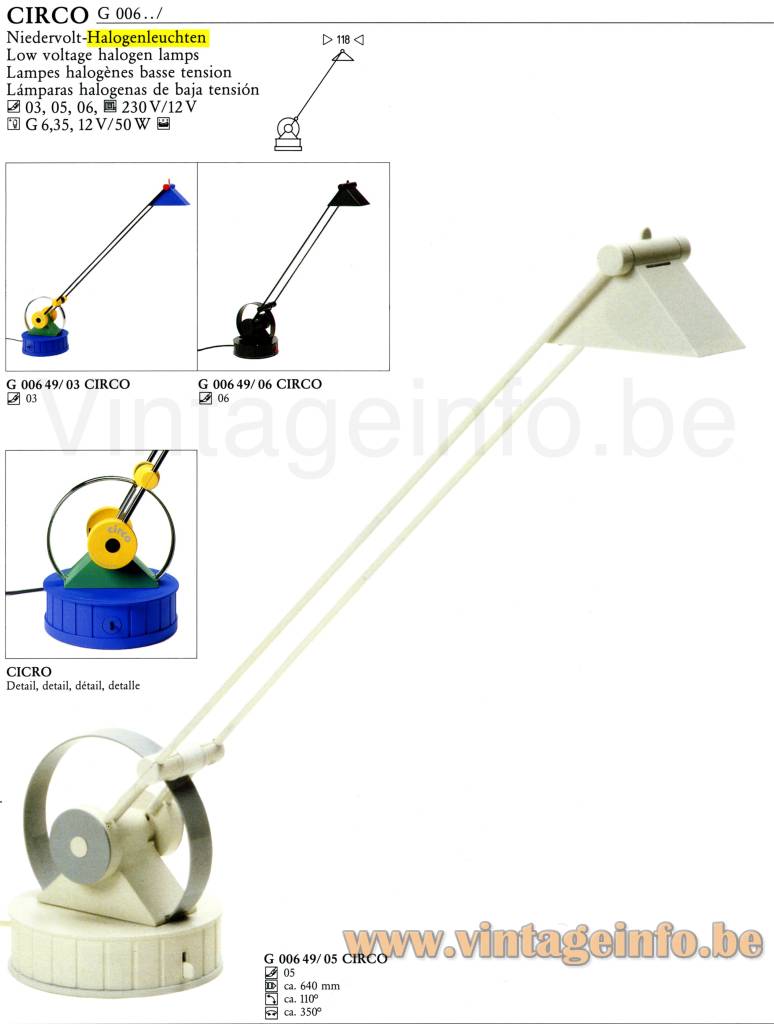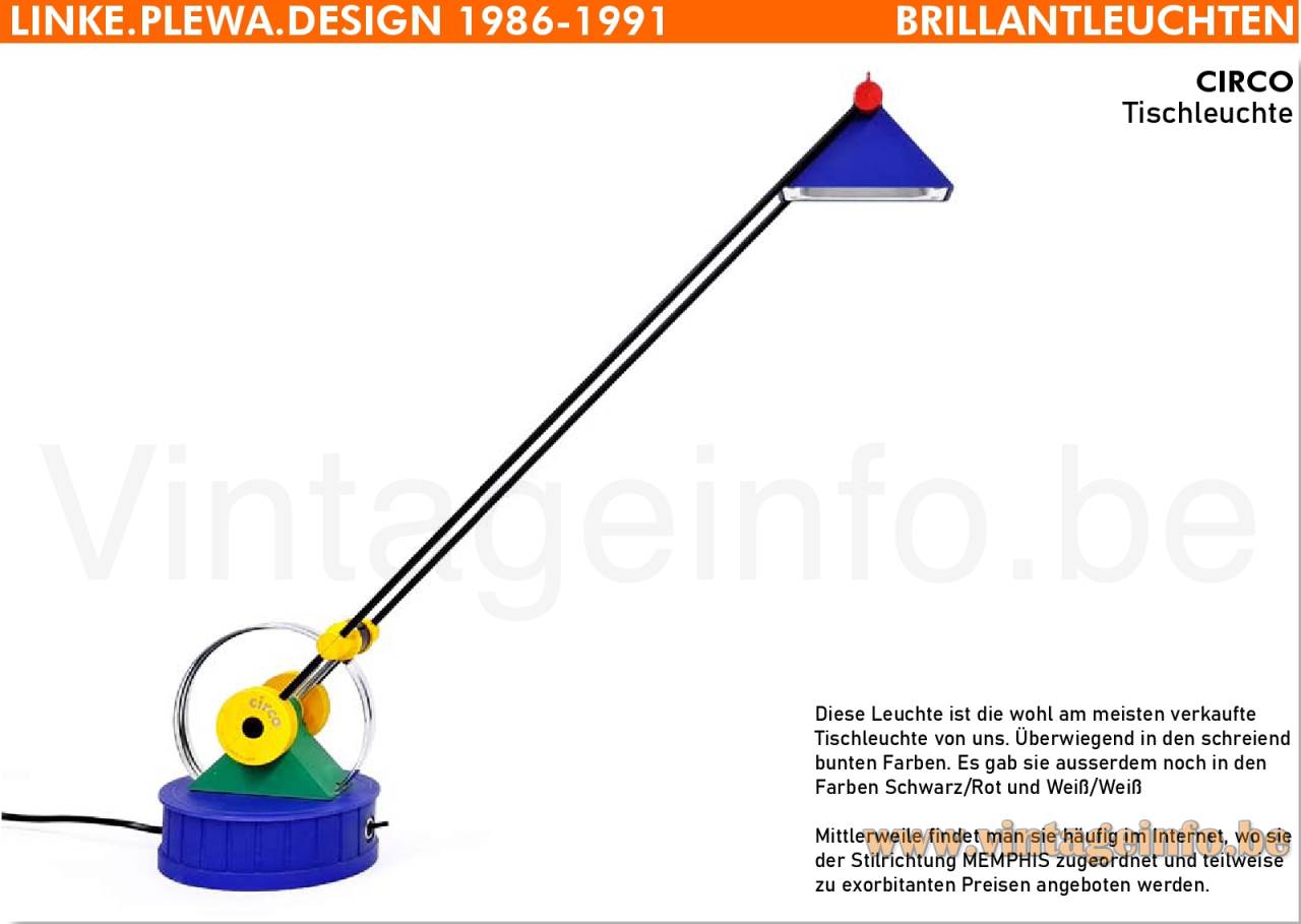 • CIRCO – Table lamp. The most commercially successful design by Linke-Plewa. Produced in bold colour combinations; today often labelled as “Memphis”.