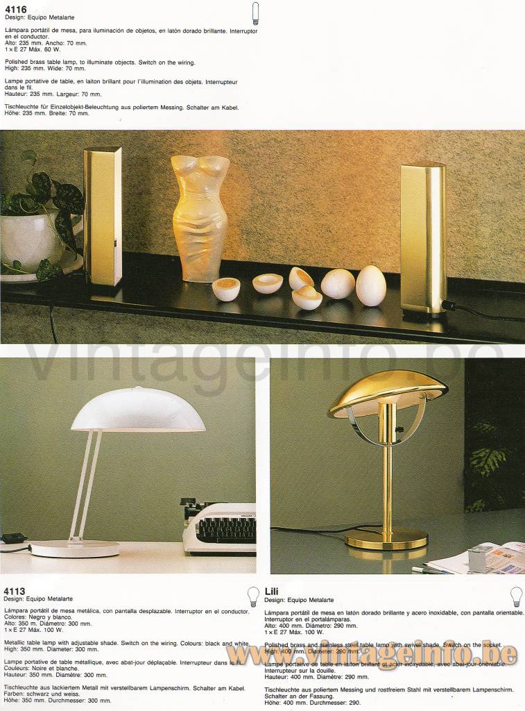 Metalarte Desk Lamp 4113 – 1983 Catalogue Picture