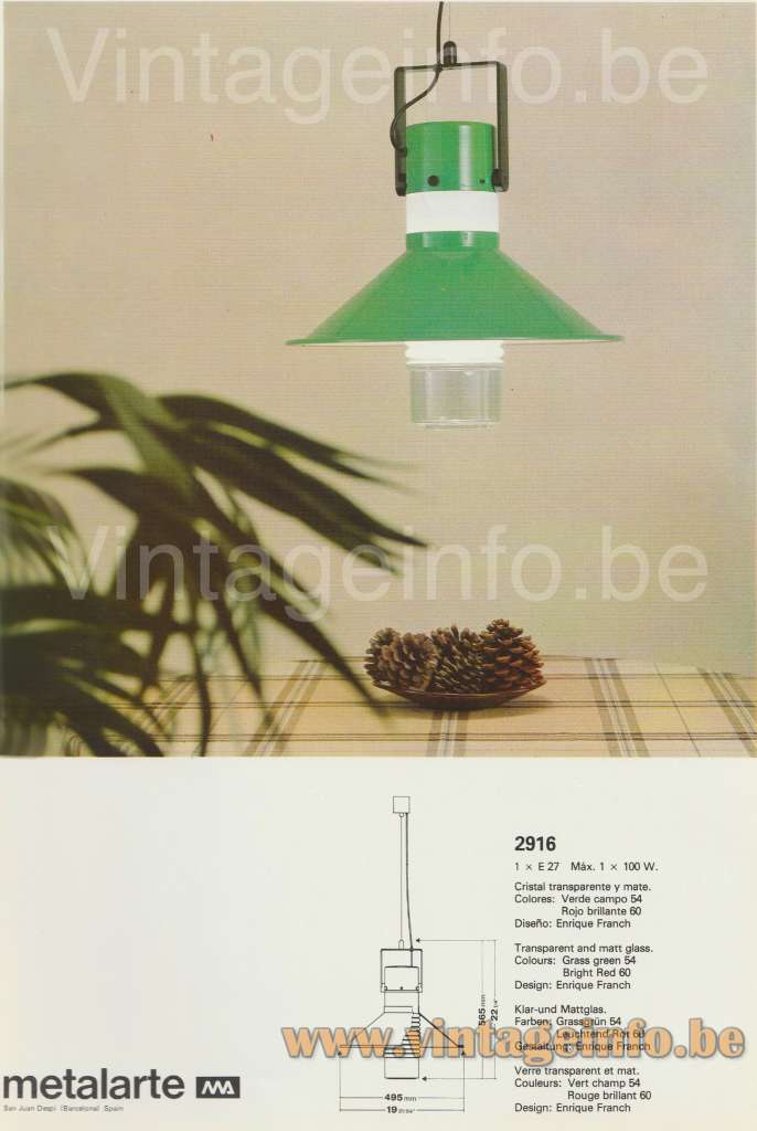 Metalarte Pendant Lamp 2916 – 1973 Catalogue Picture