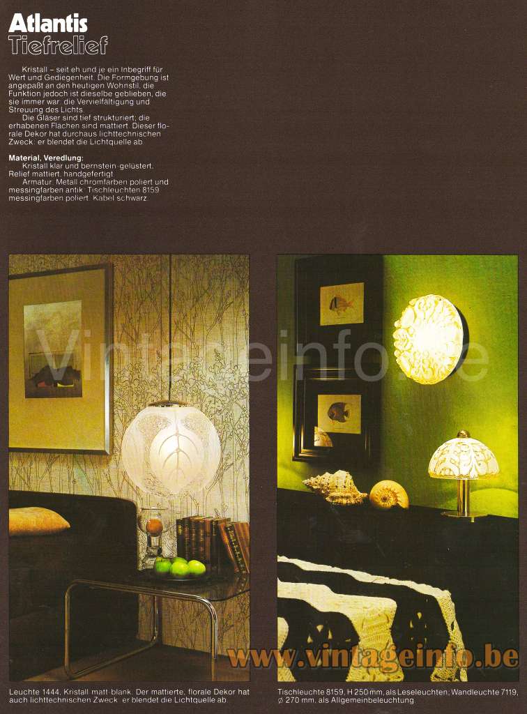 Models on this page of the catalogue: model 1444 pendant lamp, table lamp 8159 & wall lamp 7119.