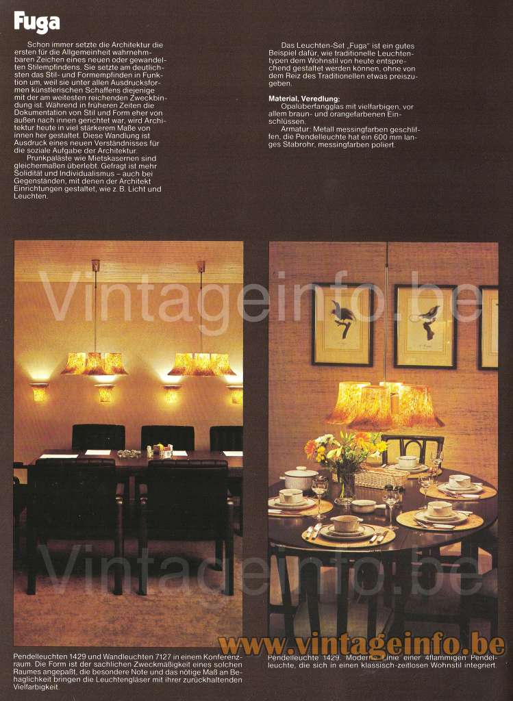 Other versions: The Peill + Putzler Fuga chandelier is made in several varieties. An upside down version was also created, as you can see in the catalogue pictures. Wall lamps and table lamps, all kind of lamps were made with this type of glass. Much more than you can see on this page, the most important ones are posted.