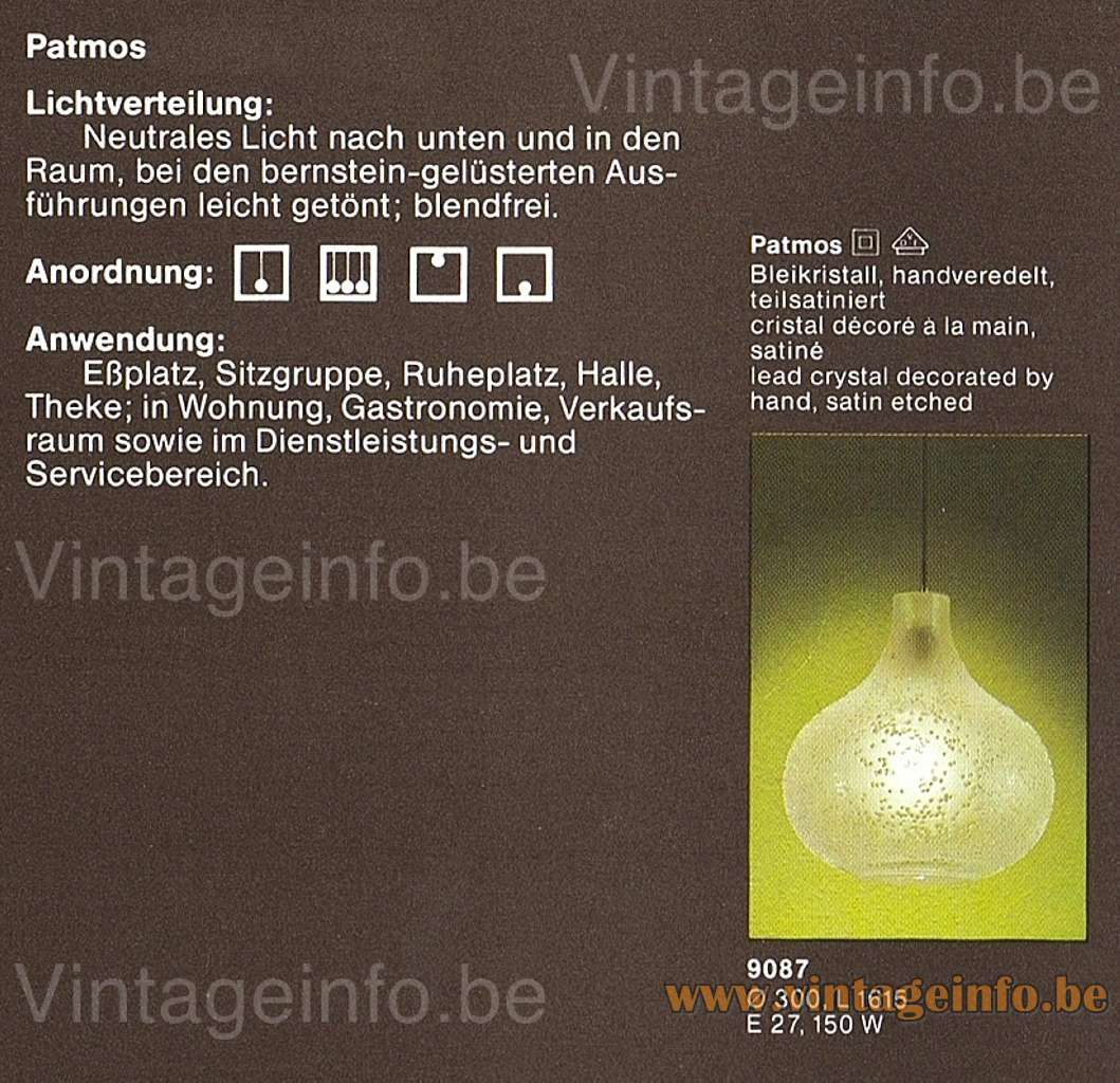 Other versions: The Peill + Putzler Patmos pendant lamp exists in many different forms and sizes. Also tableware was made in this type of glass. This pendant lamp is model 9087.