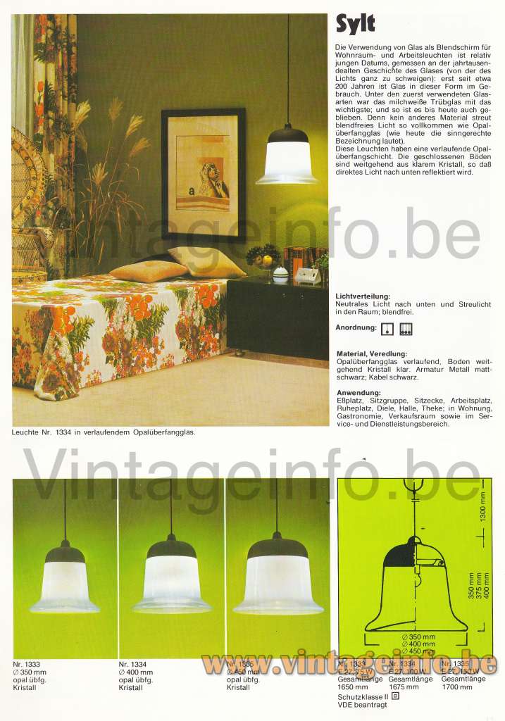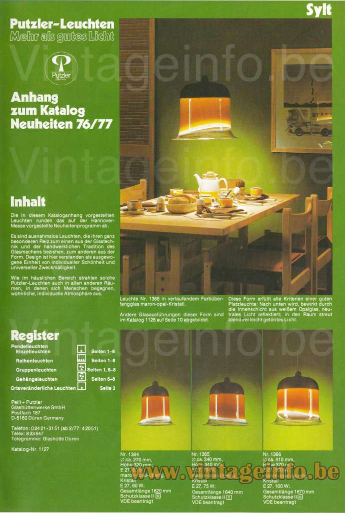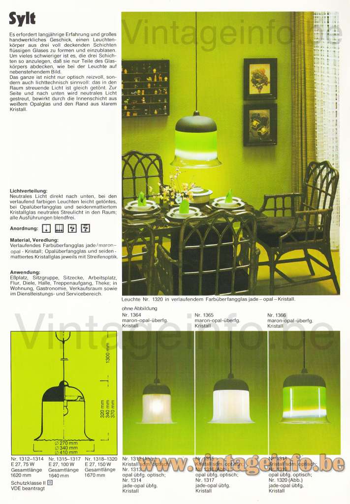 Other versions: This Peill + Putzler Sylt pendant lamp exists in several colours and 3 sizes. This lamp is model AH 182. The model numbers AH were used in the mid 70s. Later it became model number 1365. As you can see in the catalogue pictures.