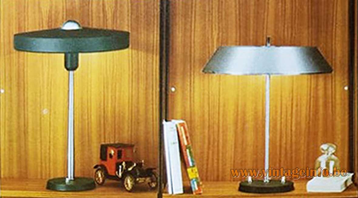 Major/Timor/Consul: This lamp has 3 names. The first name in the late 60s was Major. In the late 70s it became Timor 69. The Timor 69 was produced until the eighties. It is based on the 1950s design of the Senior desk lamp as you can see on this page.