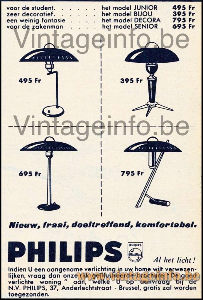 Many 1950s Philips lamps are offered today as “Louis Kalff ”. That sounds attractive, but it is not supported by Philips documentation. Kalff organised the lighting and design departments (LIBU, later ARTO), he approved designs and he set the taste, but there is no primary source that attributes specific desk or floor lamps to him personally. The similarity between his later architectural work (Evoluon) and some saucer-shaped Philips lamps, such as the Decora, Senior and Junior, simply shows that the same visual language was used inside Philips.