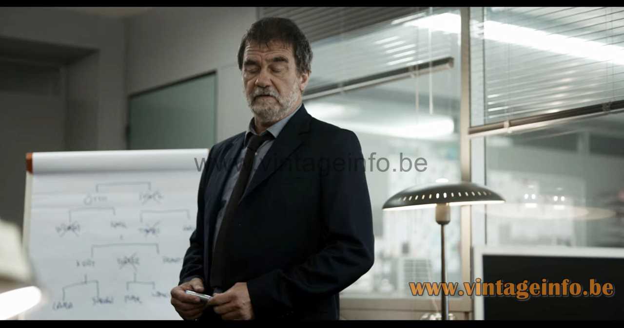 The Philips Senior table lamp appears in episode 3 of the first series and it was used 2 times, as you can see. In episode 5 it reappears, this time in an office in Roubaix, some 450 km – 280 mi from the other location. Several other lamps appear in this series. In episode 7 and 8 the lamp is located in a police office in Germany, near the French border.