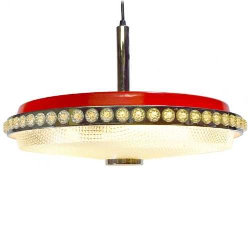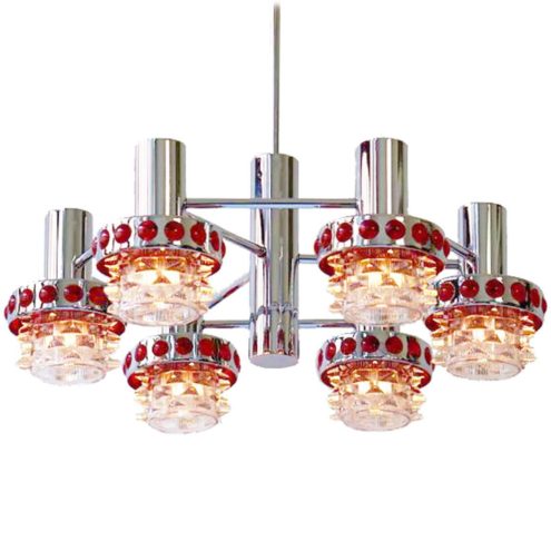 1960s Red Glass & Chrome Chandelier