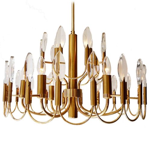 Gaetano Sciolari Brass & Crystal Drops Chandelier