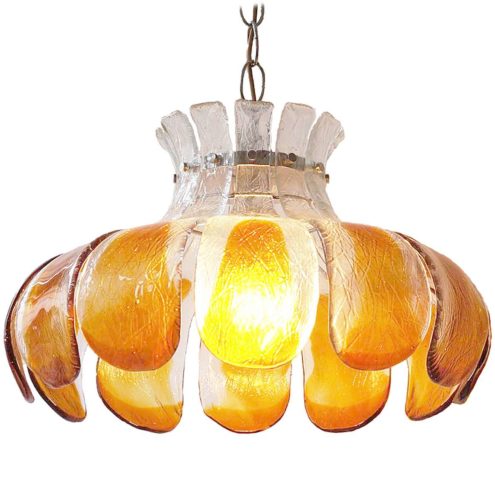 AV Mazzega Amber Glass Flower Pendant Lamp