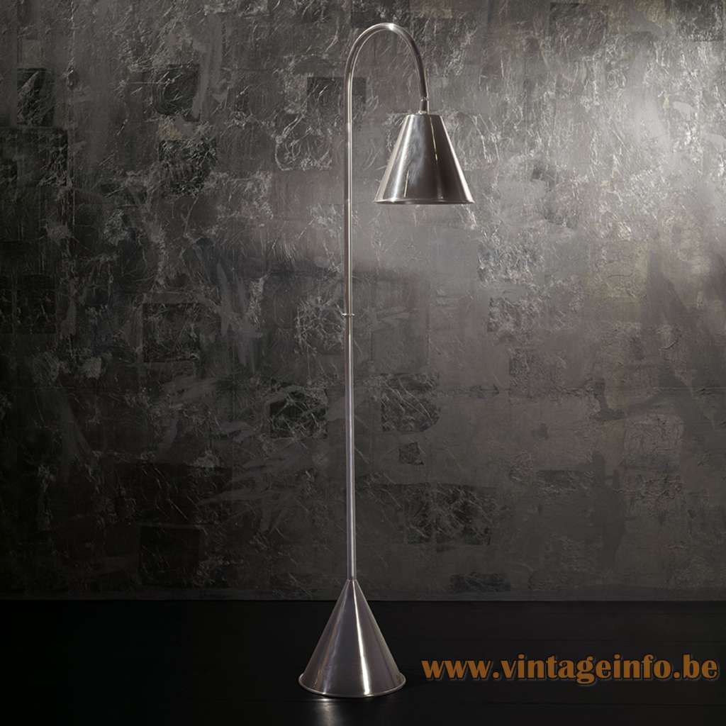 The Valentí family started at first with silversmith workshop in Barcelona. In 1925Fernando Valentí Clúa, founder of the current Valentí, was born. They produce furniture, bedrooms, and lighting. They regularly produced other designs of this floor lamp. Today, 2020, a silver plated and a cow leather version is in production. I presume they are still in business, at least the website is online. But they never answer emails, so beware.
