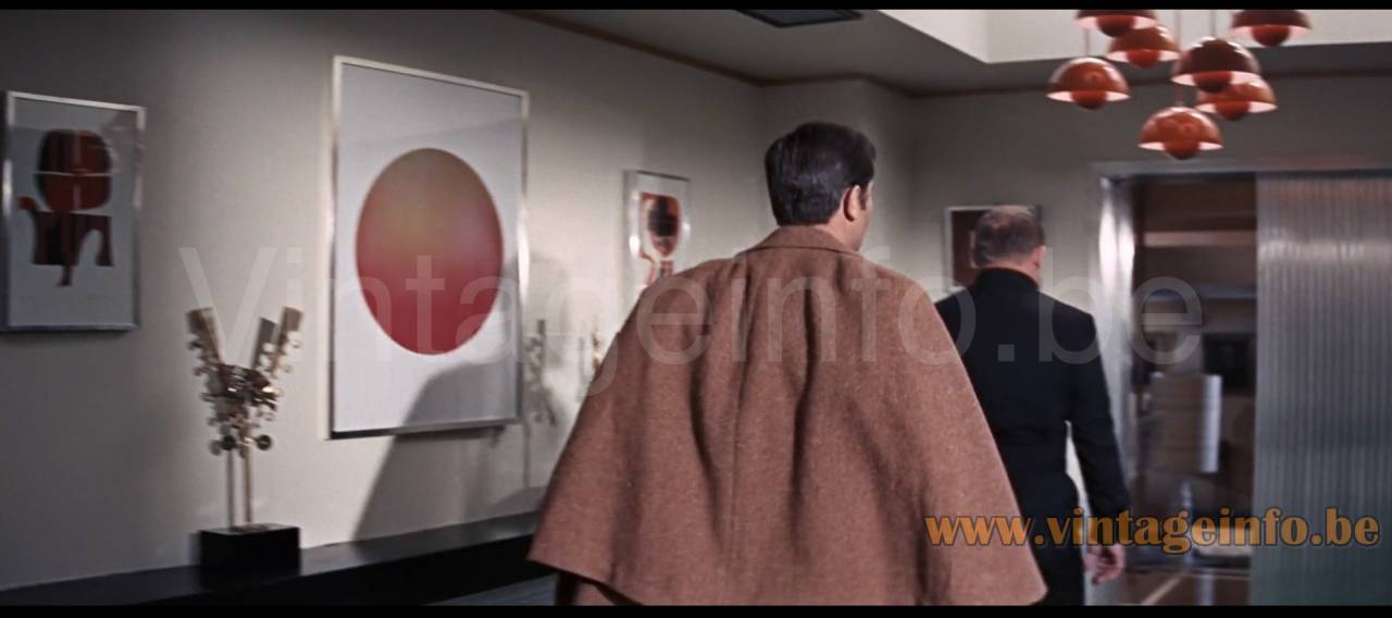 Several Verner Panton Flower Pot pendant lamps were used as set decoration in the 1969 James Bond film On Her Majesty’s Secret Service. The film stars George Lazenby, Diana Rigg and Telly Savalas.