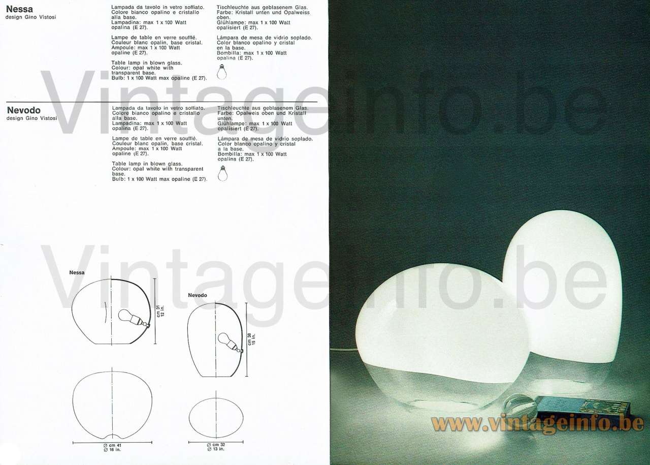 On this page of the catalogue the Nessa and Nevodo table lamp. Both designed by Gino Vistosi.