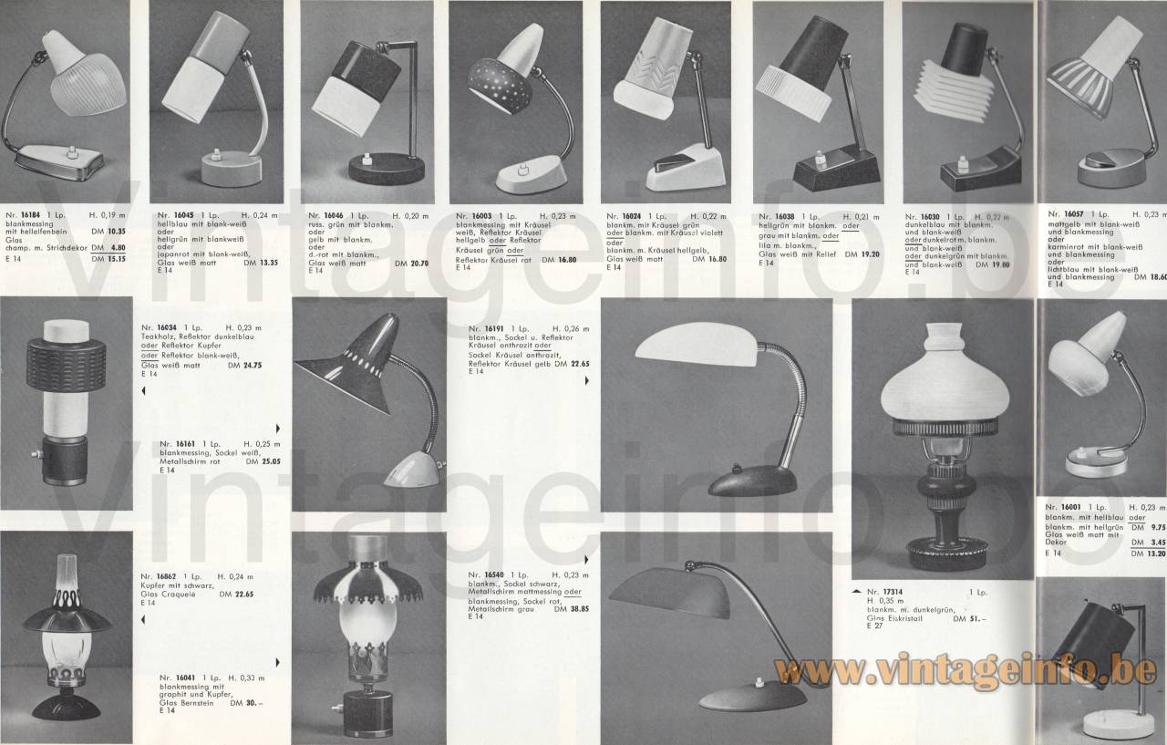Several ERPEES table lamps shown together on a single catalogue page. This lamp is located in the top row. Another version on the right in the second row.